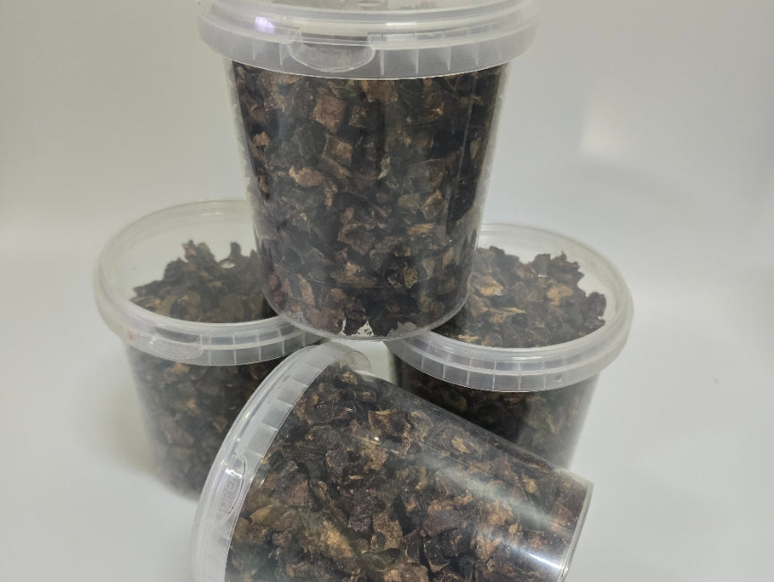 Deze trainer wordt verkocht per 200 gram in een emmertje, dus eenvoudig mee te nemen, luchtdicht afgesloten en gemakkelijk te bewaren.