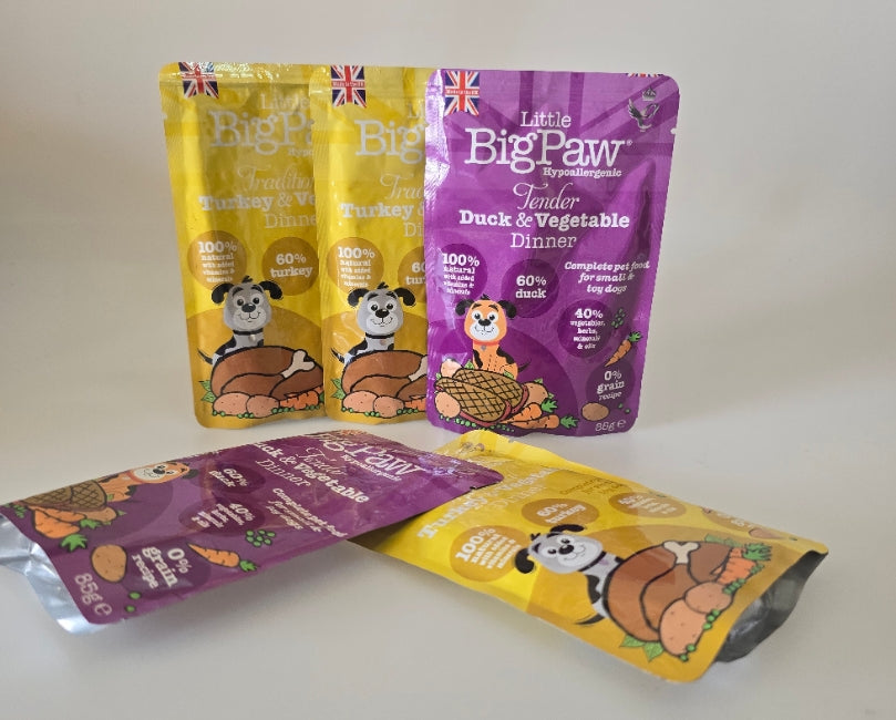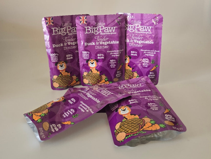De Little Big Paw zakjes met groente 85 gr. is speciaal ontwikkeld voor kleinere hondenrassen. Deze complete natvoeding bevat maar liefst 60% vlees, wat zorgt voor een licht verteerbare en eiwitrijke maaltijd. De toevoeging van zorgvuldig geselecteerde gedroogde groenten, zoals aardappel, erwten en wortel, levert waardevolle vezels en energie die de spijsvertering ondersteunen en bijdragen aan een gezond lichaam.