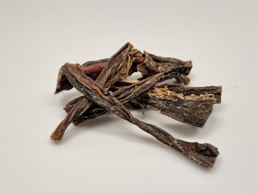 Een onweerstaanbare snack voor de hond gemaakt van gedroogde runderpens.